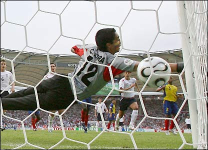 Sorry for not being around much lately but I have been busy with work and um myspace. Yeah no comments from the England match, we just can not take penalties. As soon as I knew that penalties where to be taken I wanted to leave the room but my friends kept me there to watch the horror. As for my thoughts about Rooney being sent off well he did deserve it but the Ref made his decision from Ronaldo, and was there any reason to wink at the bench? I am glad that he will not be coming back to Man Utd.